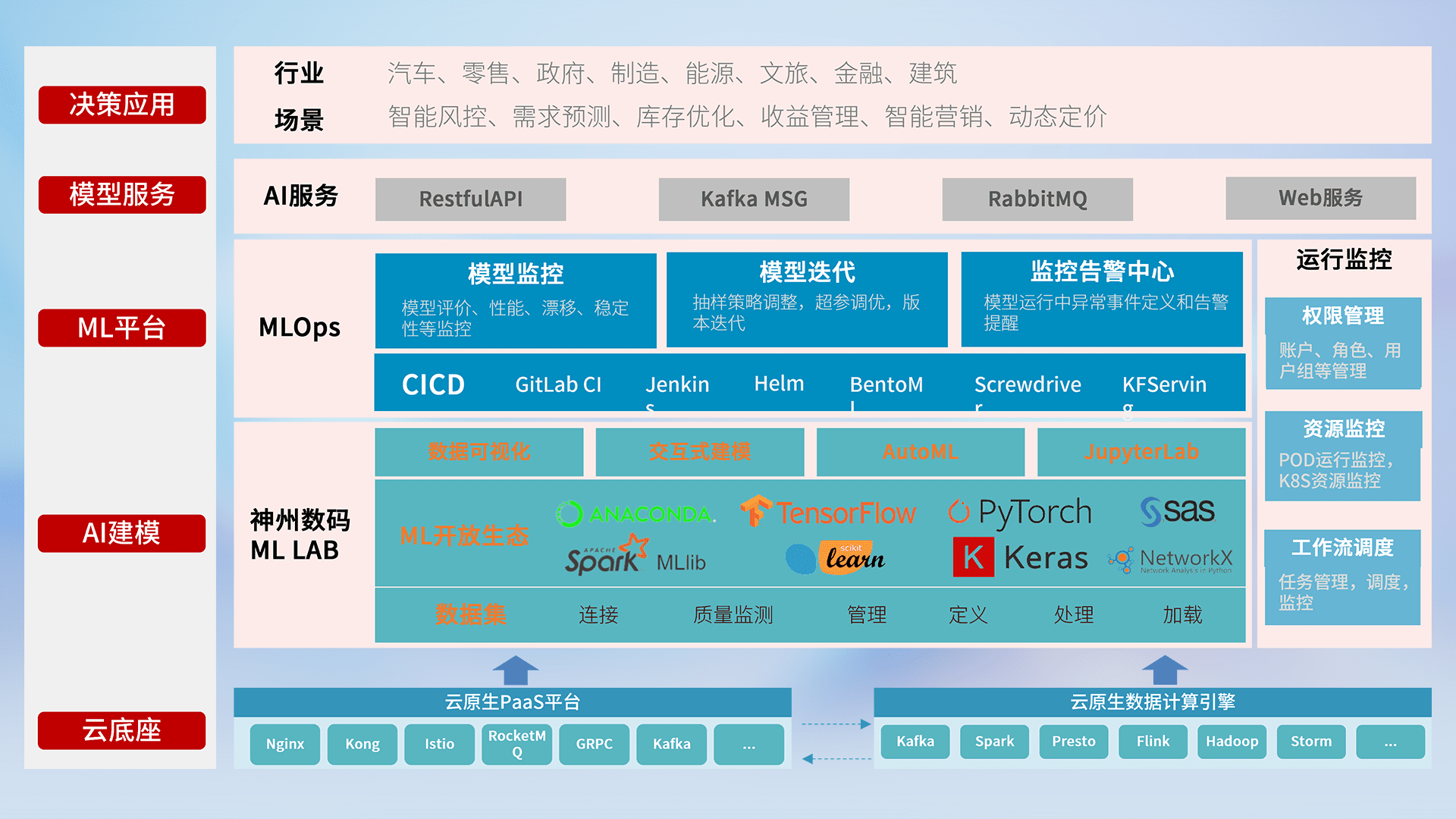 数据+模型双引擎驱动,,,面向智能服务场景,,快速灵活利用AI技术,,,,支持业务决策,,助力企业智能化转型破局。。。